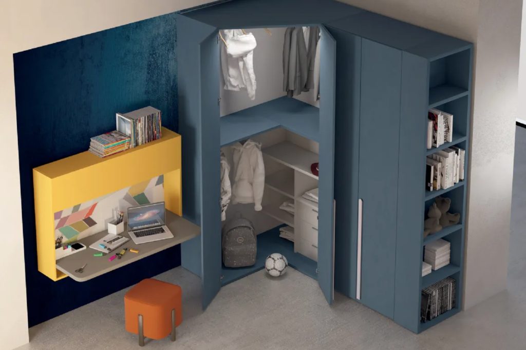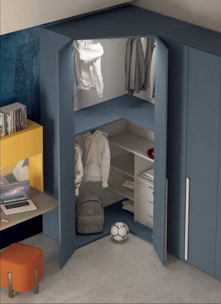 Pensata per i ragazzi di oggi e il loro mondo, questa cameretta DIELLE con cabina armadio Emily è in grado di racchiudere e organizzare tutte le attività dei ragazzi in un’isola compatta e funzionale, soddisfacendo al contempo le esigenze di spazio dell’abitare contemporaneo.